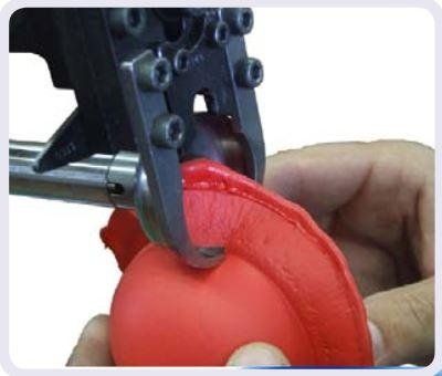Adatta a rifilare le sbavature a metà bordo di alcuni tipi di articoli tecnici e di calzature iniettate in gomma e PU.