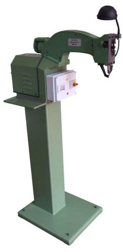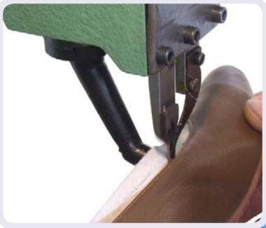 Montata su colonna o tavolo è particolarmente adatta alla rifilatura delle fodere delle calzature da donna dopo il montaggio. La controlama fissa consente la rifilatura delle fodere a filo o leggermente all’interno del bordo della tomaia. La macchina è corredata di mola smeriglio sagomata per l’affilatura del coltellino.
